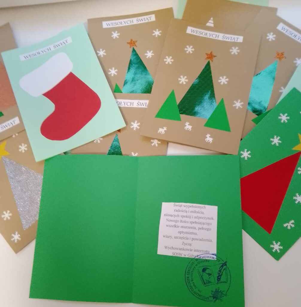 3. Wychowankowie internatu Specjalnego Ośrodka Szkolno-Wychowawczego w Giżycku. Młodzież z internatu wykonała piękne karty świąteczne, które w czasie Wigilii 12 grudnia zostały rozdane wszystkim chorym.